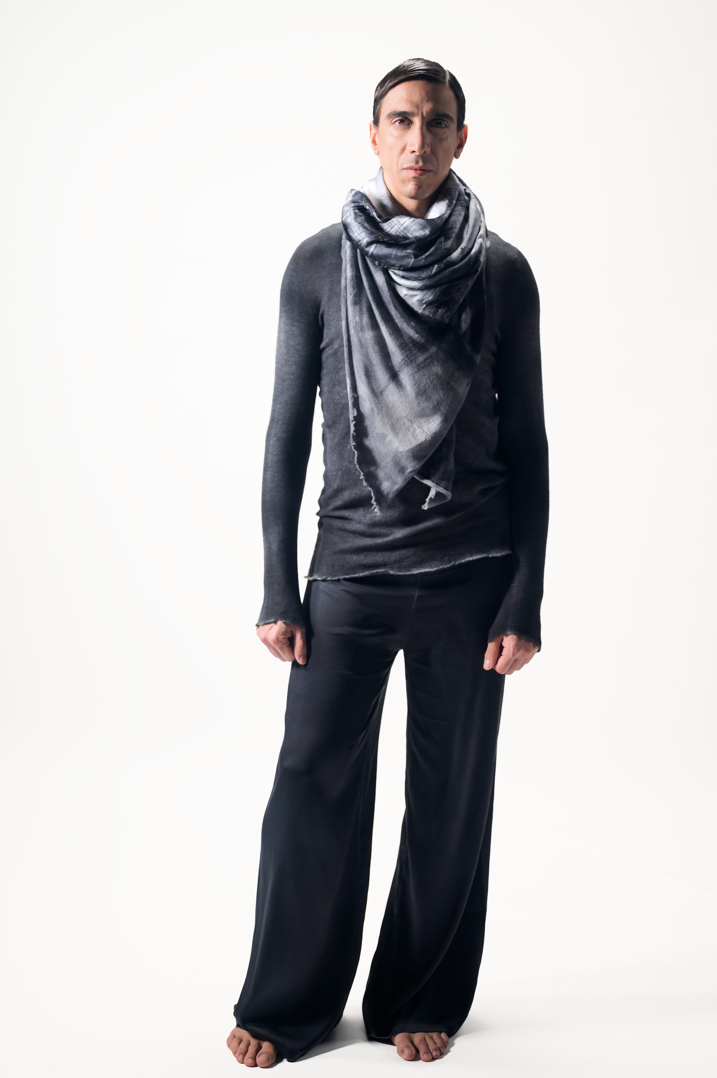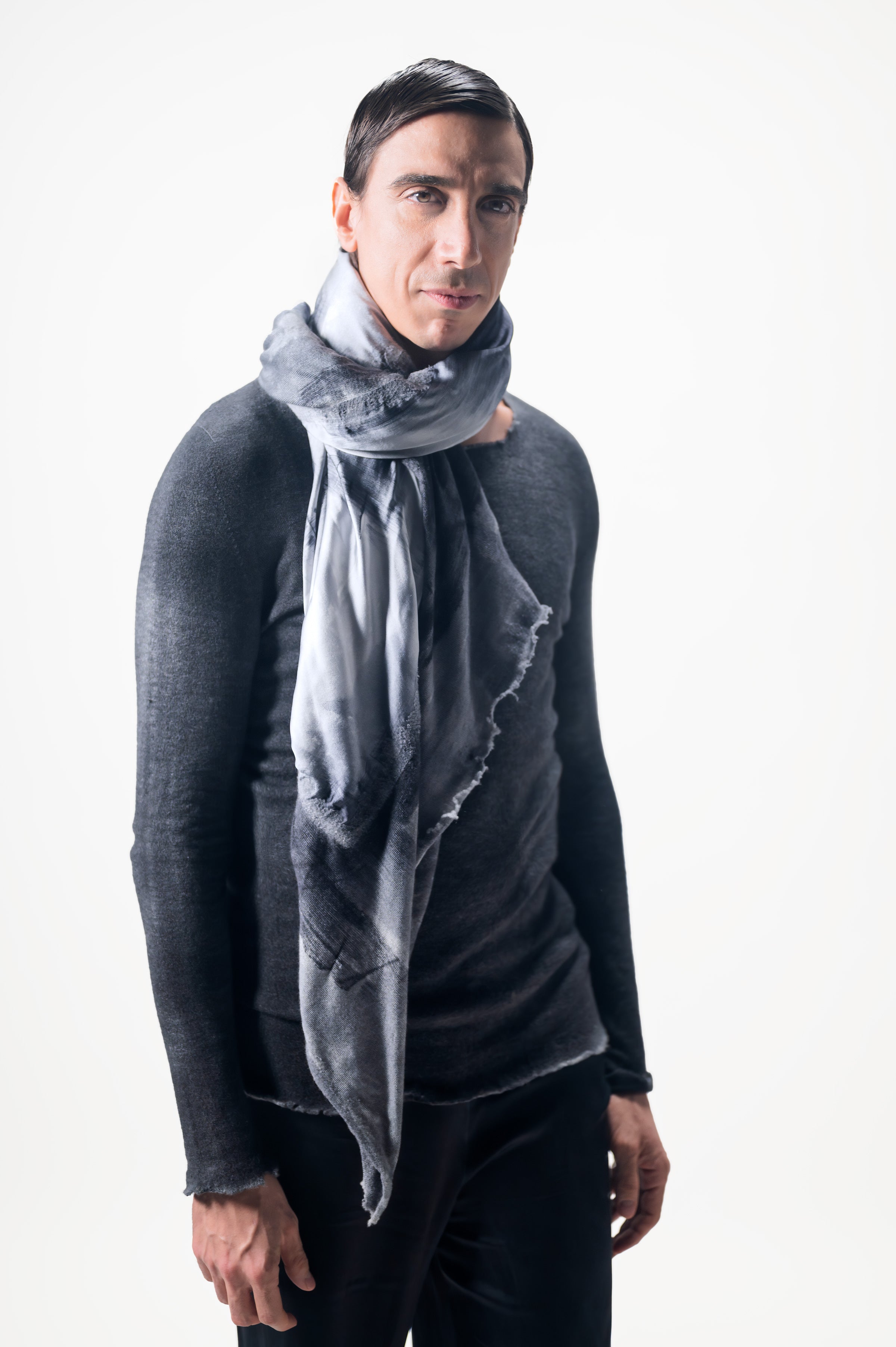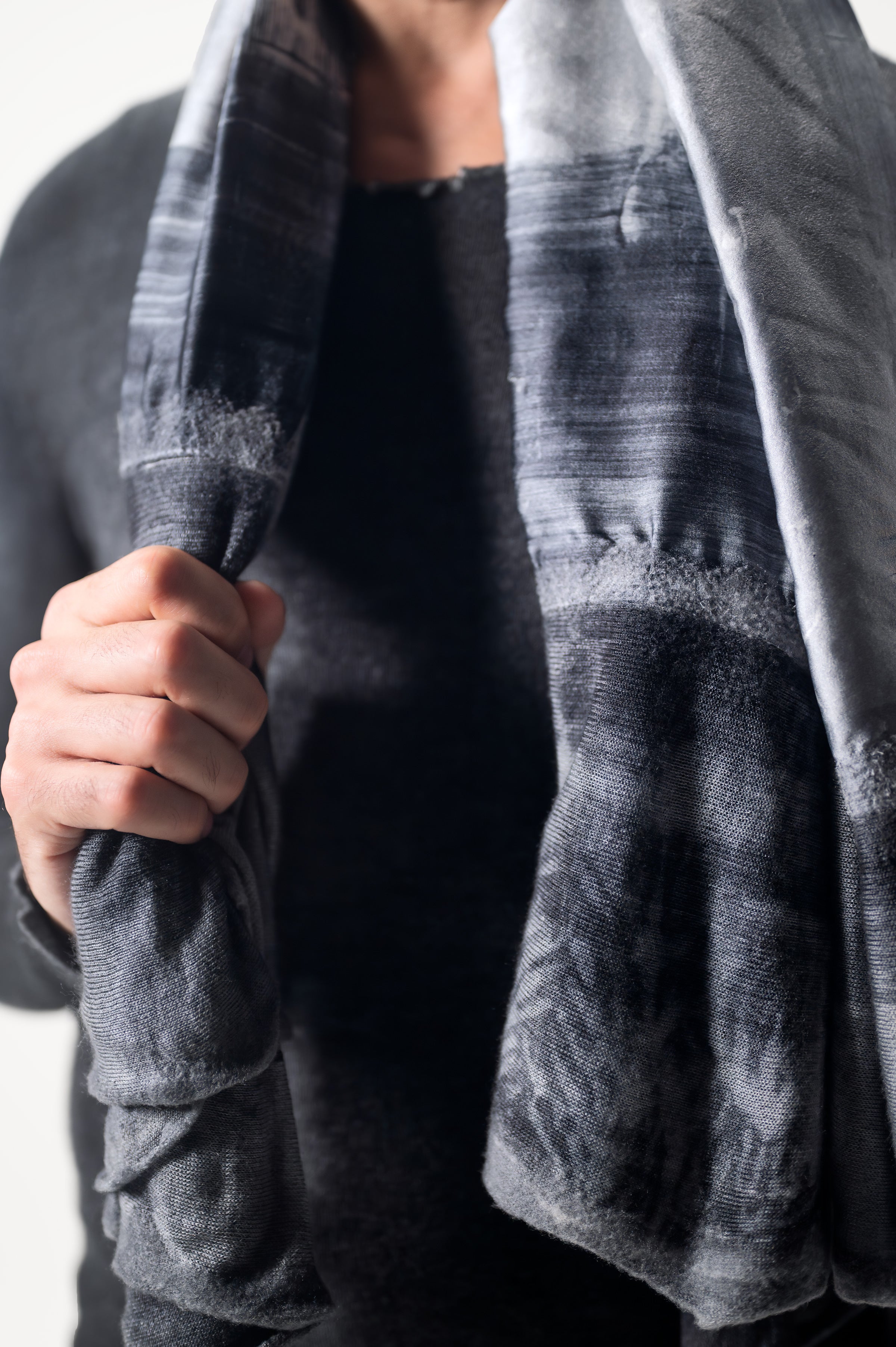 Simbolo del brand, la sciarpa con foulard THE ICON, frutto di una sapiente combinazione di seta fusa con un velo di cashmere e seta con i caratteristici bordi destroyed, rappresenta l’essenza della maestria artigianale di AVANT TOI, che rende ogni capo unico e inimitabile.